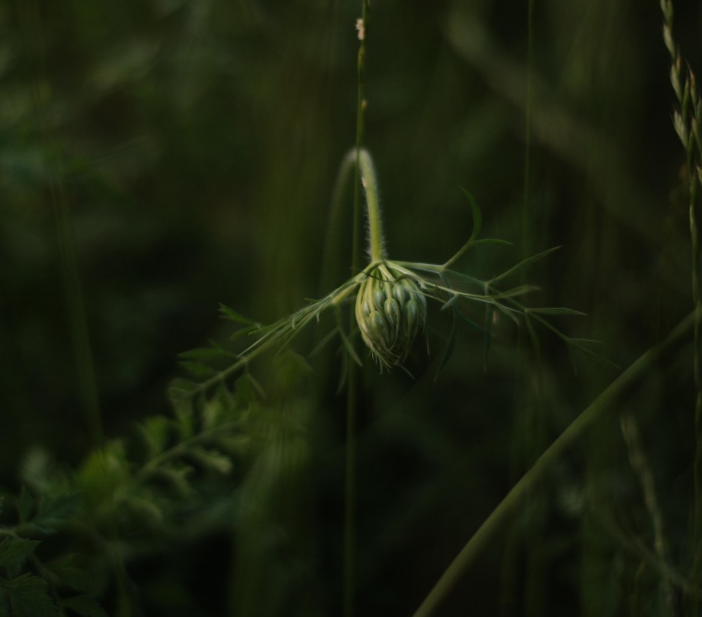 I take a lot of long walks, spending hours in a single long patch of ferns, losing myself in a roadside patch of queen anne’s lace, belly-crawling to get close to a tiny purple mushroom. I regularly risk my camera crossing creeks and climbing trees.